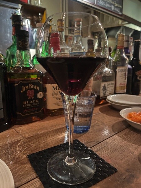 一緒に来た友人は、赤ワイン(600円)を頼みました。コクのある味わいのピノタージュで、こちらも料理にぴったりの一杯。
