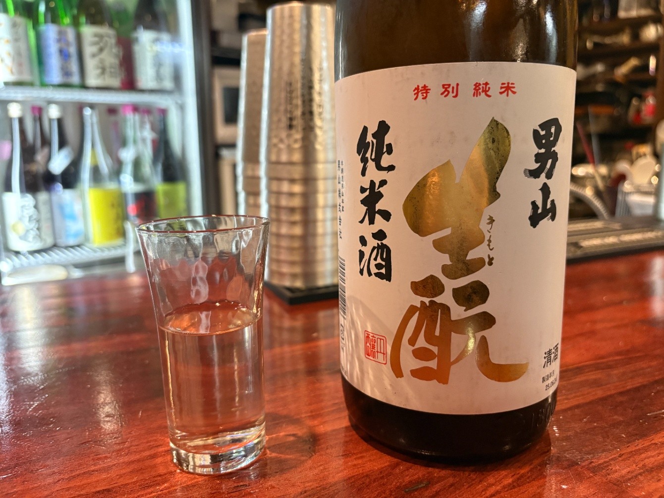 次は、少し飲み応えのあるものを。北海道の男山 特別純米 生酛純米にしました。伝統的な生酛造りで、芳醇な香りがたまりません。