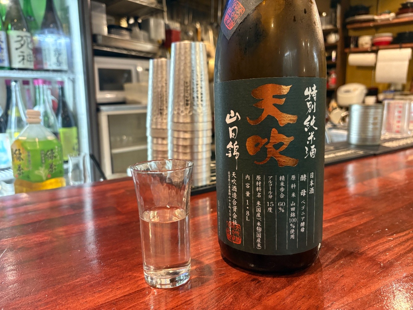 次は、ちょっと酸のあるタイプにしました。佐賀県の天吹 超辛口 特別純米酒です。フルーティーですっきりとした飲み口です。