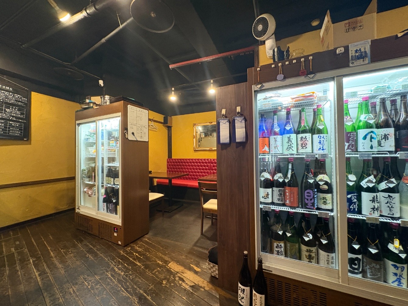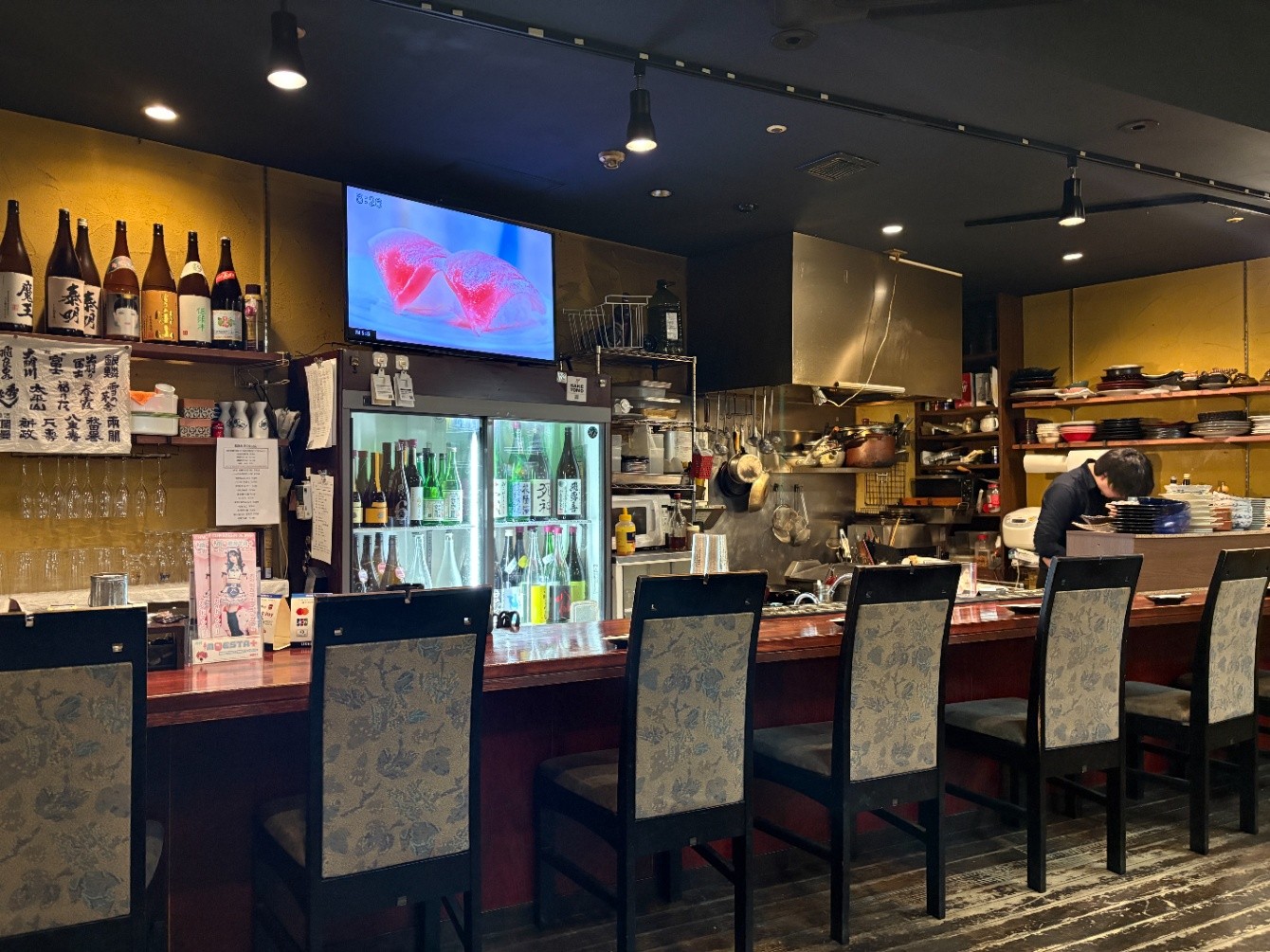 店内は、居酒屋というよりはバー寄りの雰囲気でちょっと緊張…。でも、優しそうなスタッフさんが笑顔で席まで案内してくれました。カウンター席のほか、グループで使えそうなテーブル席もあります。